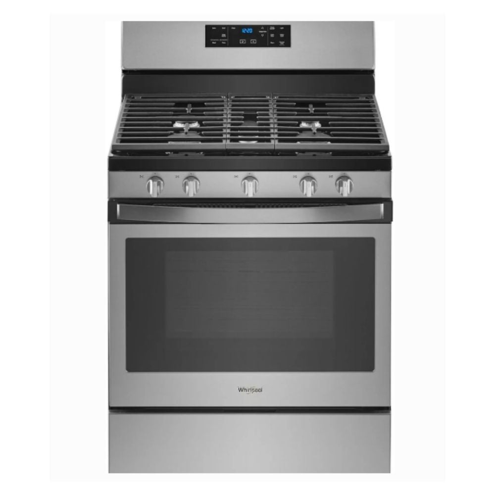 30 Inch Freestanding Gas Range with 5 Sealed Burners, 5.0 cu. ft. Oven Capacity, Porcelain Coated Steel Cooktop, Self-Clean Function, Knobs & Touch Controls, Fingerprint Resistant Stainless Steel